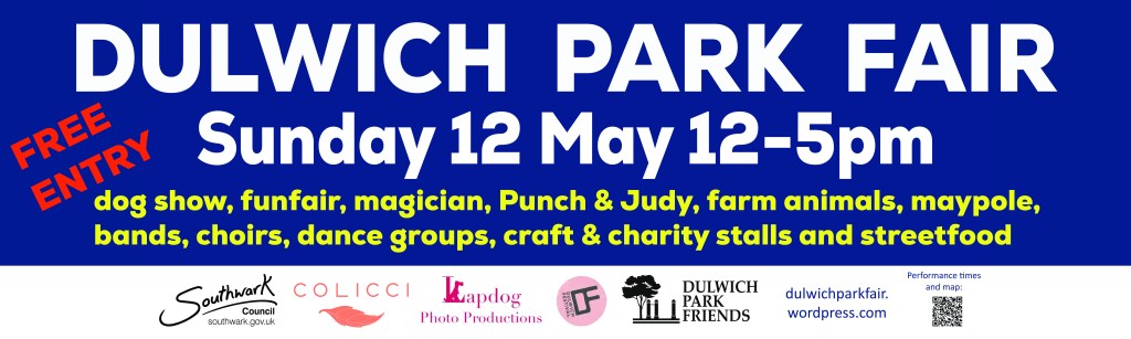 Dulwich Park Fair is back! Posted on 26/04/2024 by editor For more information go to our dedicated Fair website About Don’t forget we have a dog show at the Fair for your beloved furry friends! Share this: Click to share on X (Opens in new window) X Click to share on Facebook (Opens in new window) Facebook Click to share on WhatsApp (Opens in new window) WhatsApp Click to email a link to a friend (Opens in new window) Email